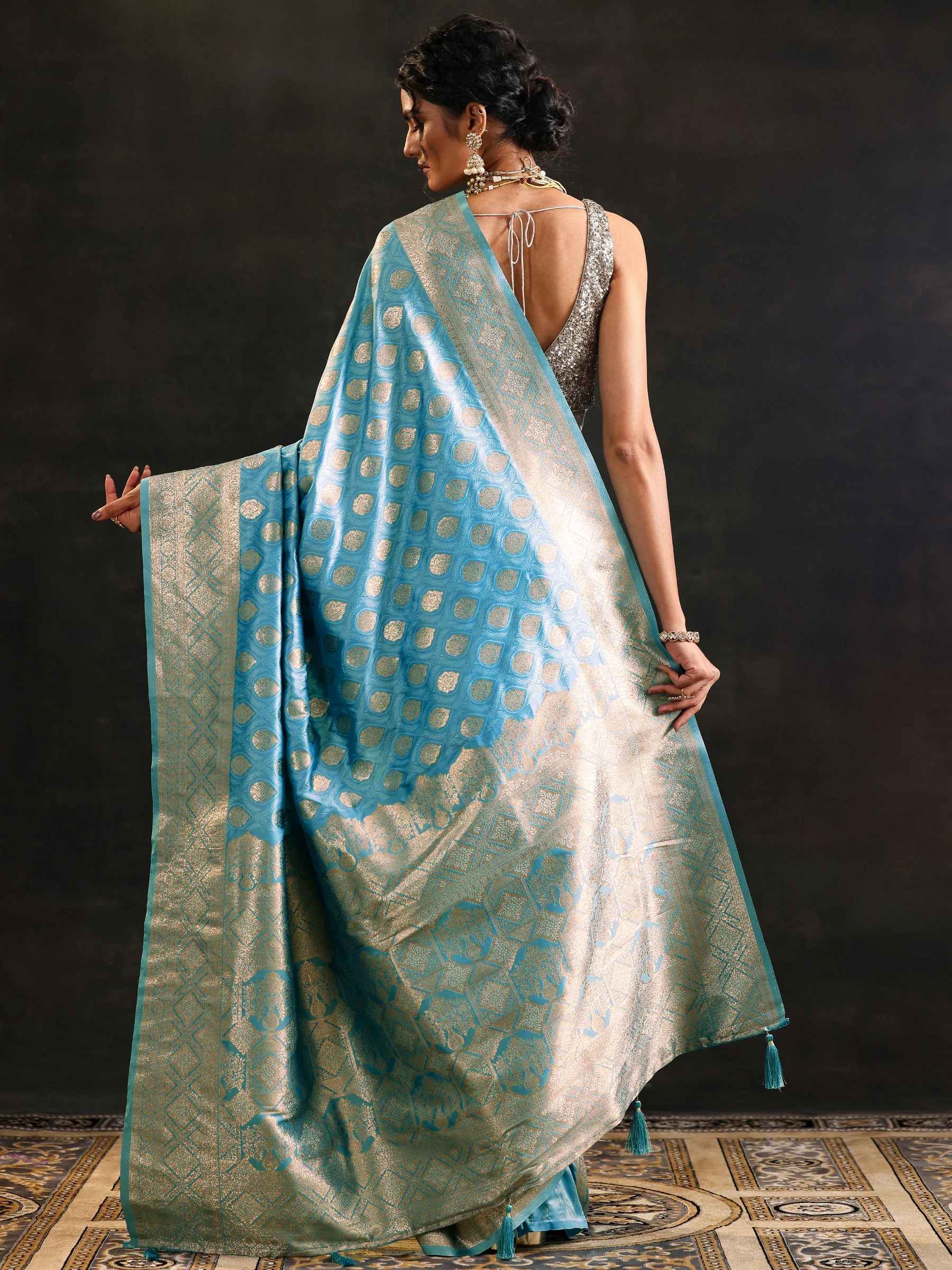 Blue Woven Design Silk Blend Saree With Unstitched Blouse Piece