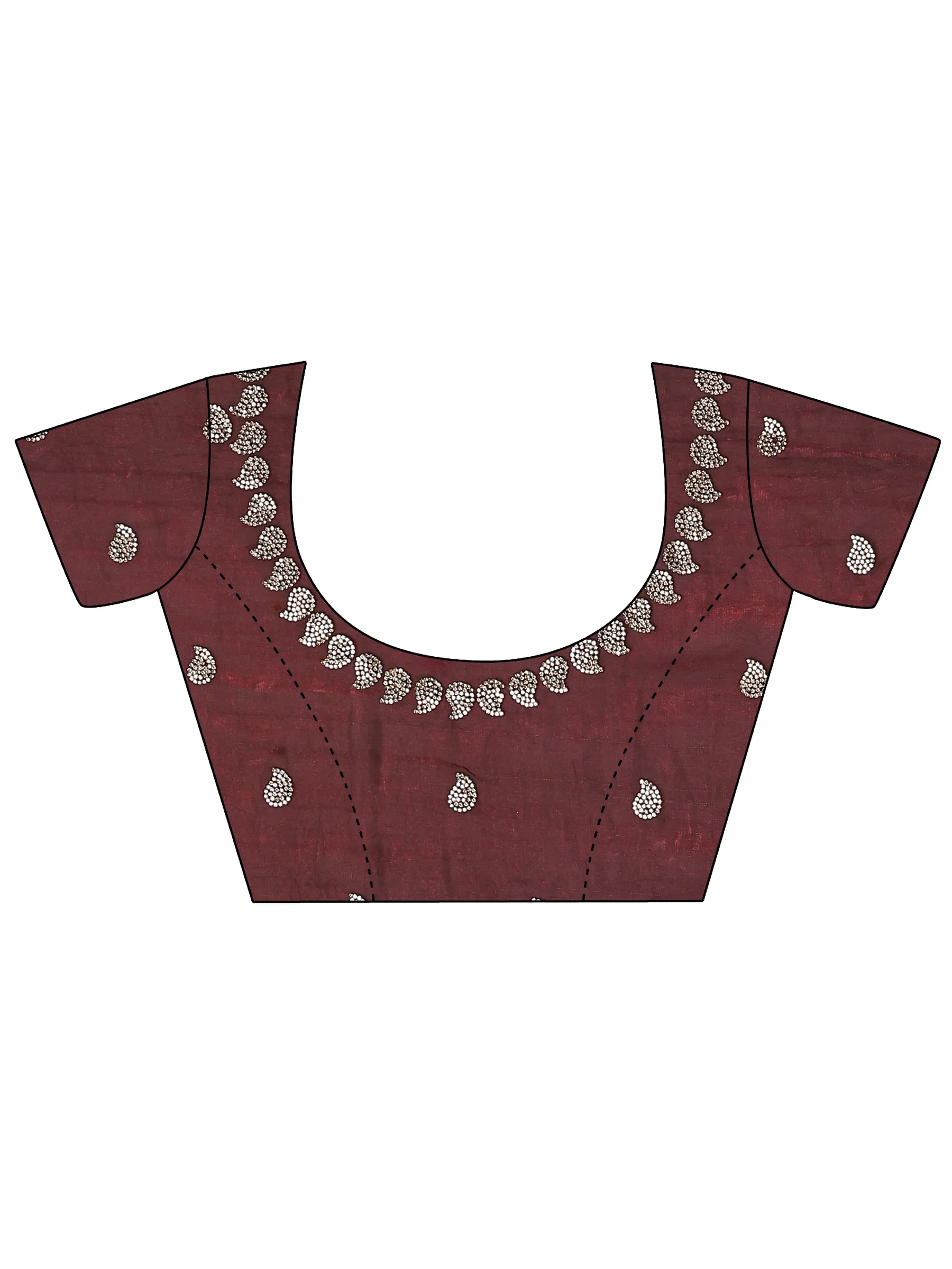 Maroon Solid Silk Blend Saree With Unstitched Blouse Piece