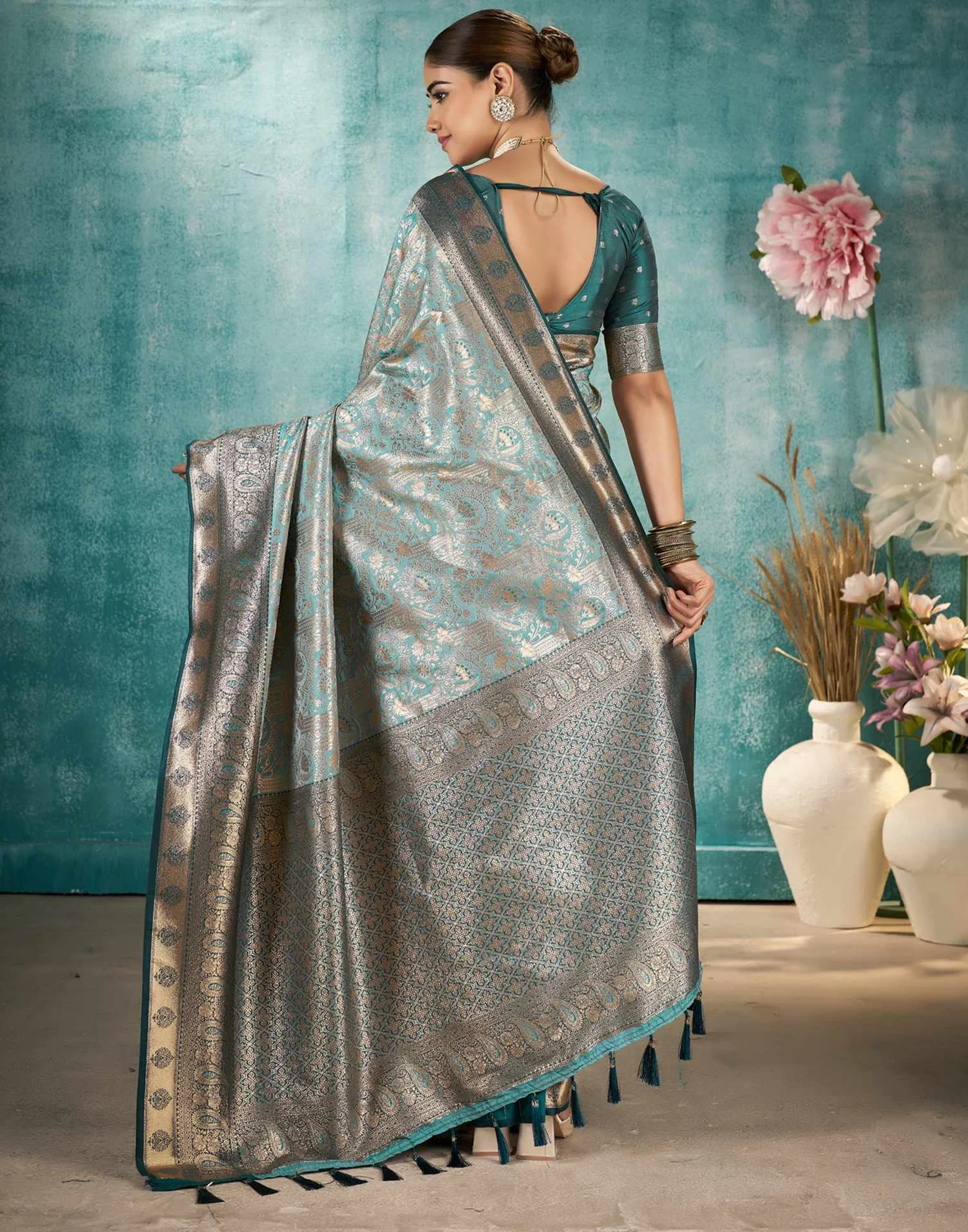Sea Green Silk Woven Banarasi Saree